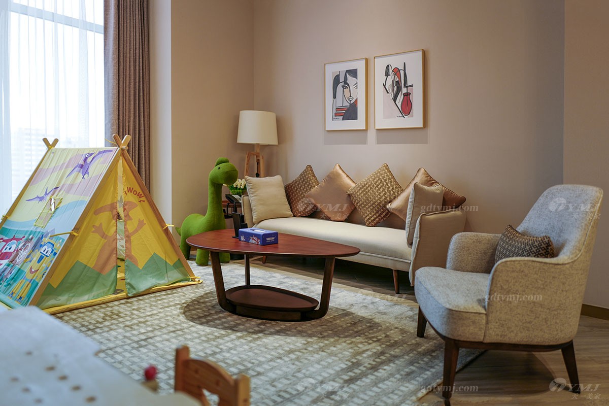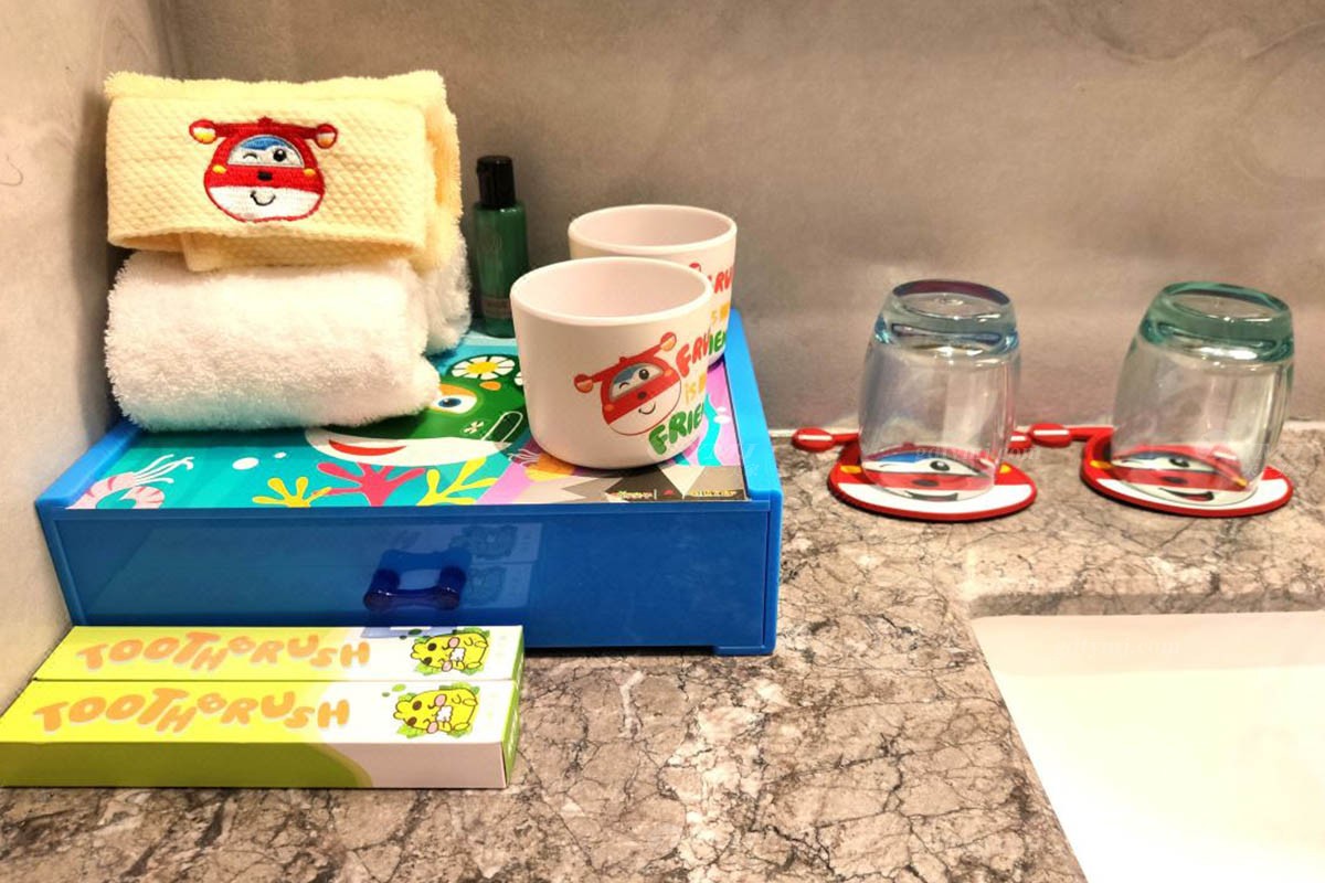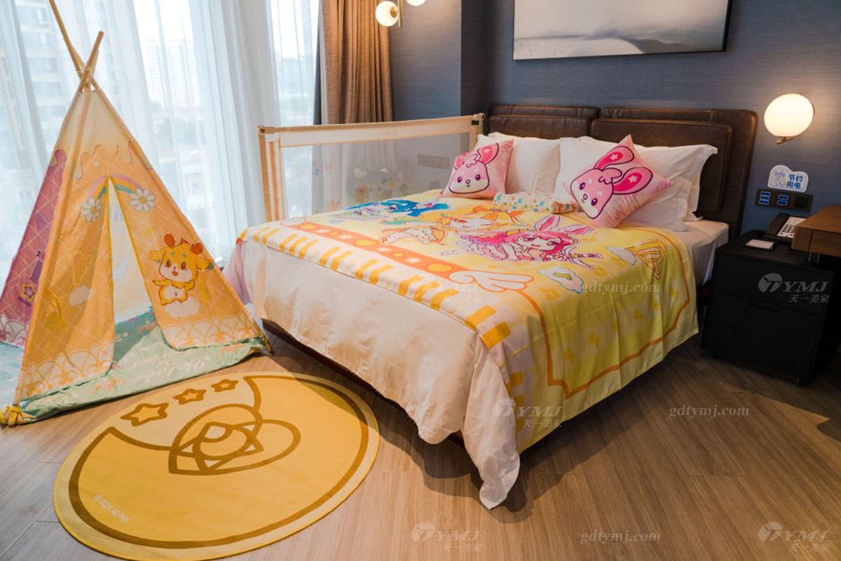 溫馨有趣的主題親子房分別以小朋友非常喜愛的兒童動(dòng)畫片《超級(jí)飛俠》、《豬豬俠》、《巴啦啦小魔仙》等系列為主題而進(jìn)行精心設(shè)計(jì)打造,無論是客廳、臥室,還是洗手間的布置裝飾,隨處都可見到主題動(dòng)畫里活潑有趣勇敢的主角們的元素,主題親子房還配備了相關(guān)的兒童帳篷、玩偶、小滑梯,小動(dòng)物坐凳等等,通過這些透露著愛與細(xì)致、并融入了主題元素的活動(dòng)家具軟裝的點(diǎn)綴裝飾,讓房間內(nèi)瞬間充滿活力與趣味性,營造出一個(gè)既溫馨自然又充滿趣味與想象力、大人和小孩都能樂享其中的美好空間。