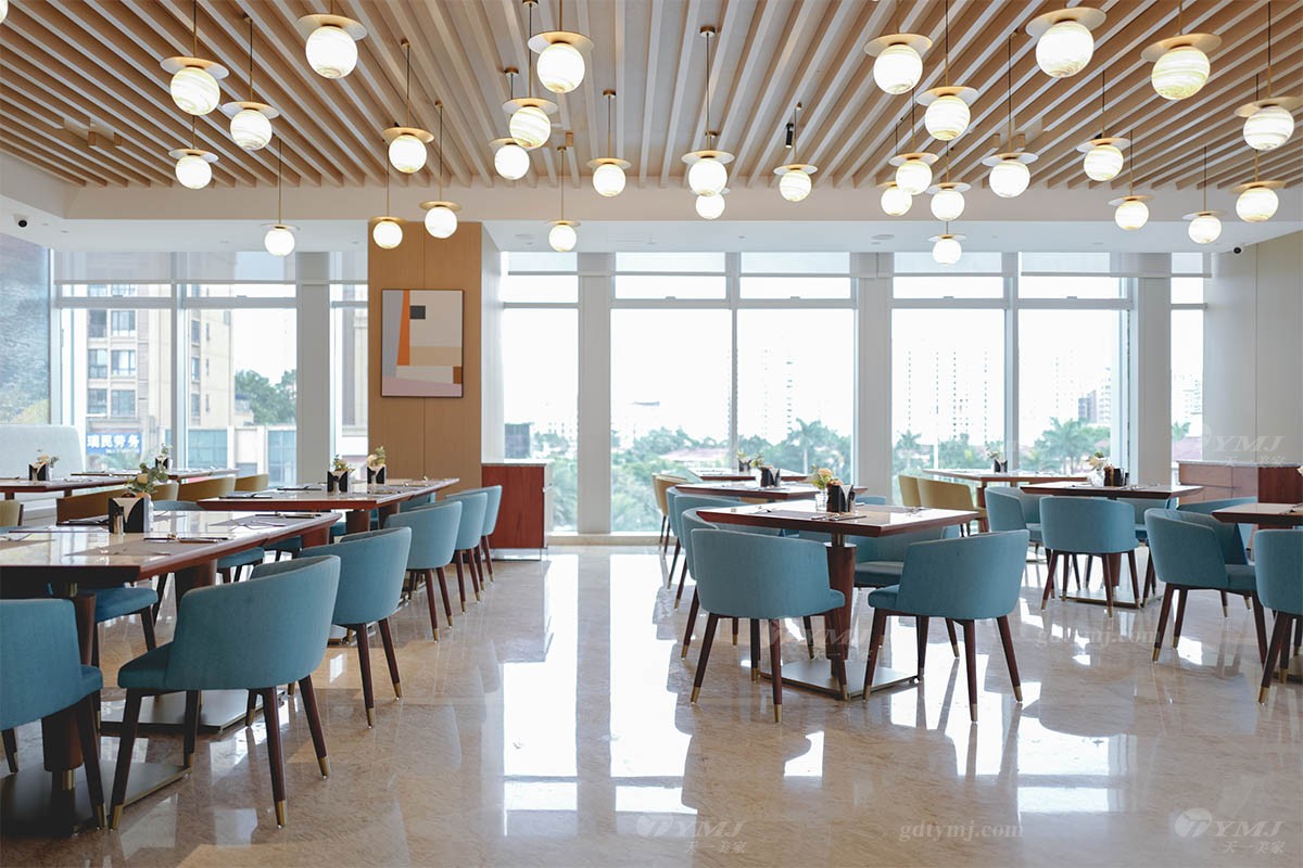 清新雅致的酒店自助餐廳,空間寬敞明亮,實(shí)木方形的小餐桌,表面紋理質(zhì)樸、觸感溫潤,金屬底座的巧妙融入,帶來很強(qiáng)的時(shí)尚現(xiàn)代感同時(shí)多了一份優(yōu)雅,精心制造的北歐風(fēng)實(shí)木餐椅,藍(lán)色和嫩綠色的布藝椅面相得益彰,整個(gè)餐廳呈現(xiàn)出清新自然、北歐風(fēng)情滿滿的氛圍,瞬間打開你的味蕾,沉浸于這份難得的寧靜與美食的享受當(dāng)中。