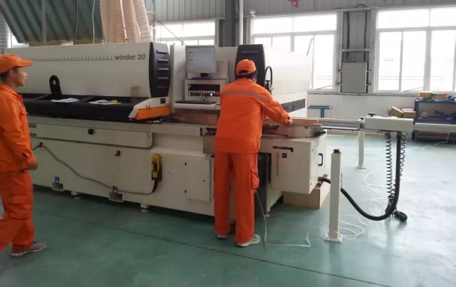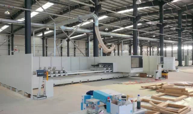 在A區里只見成排的車間里,為數不多的工人正在忙碌著,正趕制一筆3000萬元的訂單。生產設備均采用德國、意大利進口的自動化生產設備,人工需求量少,整個天一窗業公司包括設計研發、生產一線、管理人員160多人,年生產能力可達50萬平方米,主要研發、生產鋁木窗、木包鋁、斷橋鋁合金、幕墻設計等中高端產品。