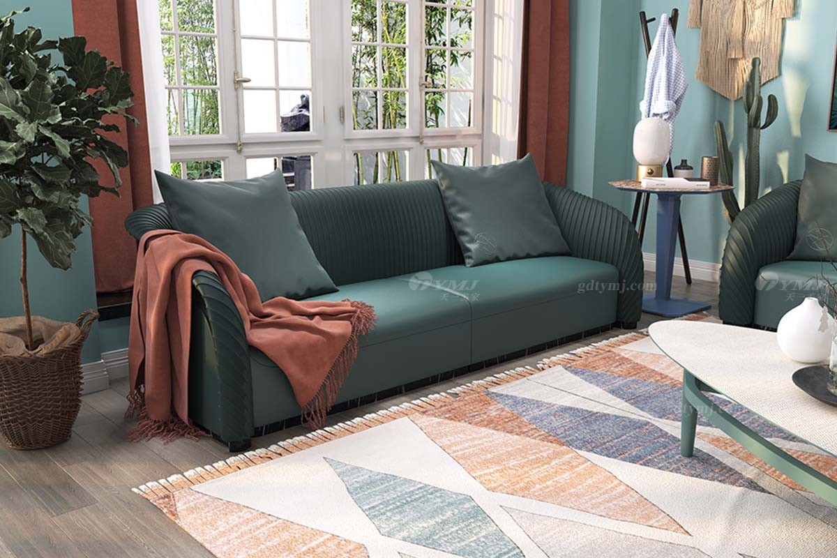 在新冠肺炎疫情還未完全褪去,炎熱的夏天即將到來,這對本就煩悶的人們來說更添一份浮躁,但是,如果你看到這樣一款家具沙發,是否會讓你眼前一亮,頓時心情舒暢很多呢?接下來就是小編今天為大家打來的這樣一款充滿時尚藝術設計感的綠色客廳沙發組合,一起來看看吧: