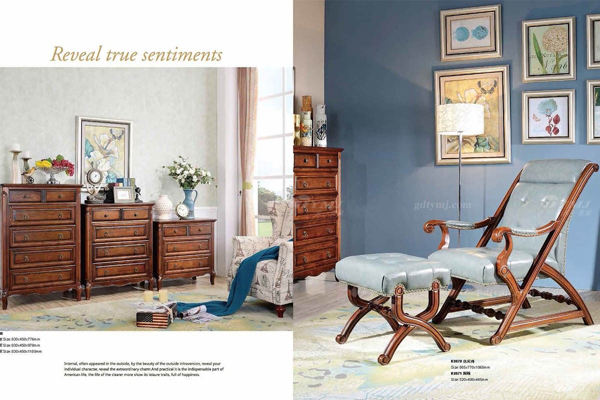 在個追求享受的時代,我們不能因為繁忙而占用了我們品位生活的時間,讓我們重新梳理我們的日子,感受那一草一木,微風顏途的高尚生活情懷。美式田園家具往往內在的美,時常會顯露在外,由內向外的美,彰顯你的個性,流露非凡的魅力。而實用更是美式生活不可或缺的一部分,生活的條理有序更顯其悠閑特質,幸福滿盈。