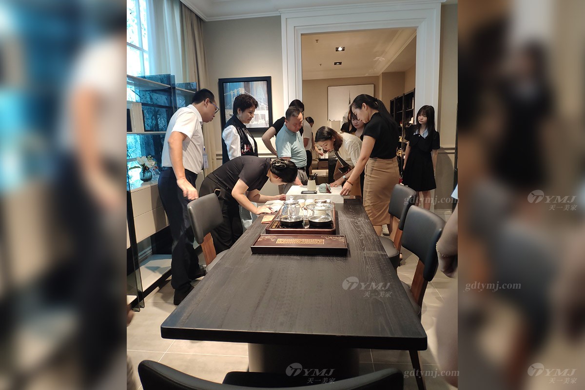 本次產品知識培訓場地位于天一美家旗艦展廳內,展廳共分三層,每層分別擺放不同風格產品,包括中古風、極簡、時尚新中式等家具風格,產品培訓主題內容是:由天一美家聯合創始人、展廳負責人劉志方女士帶領大家一起深入了解并掌握展廳內各產品風格特性并分享相關銷售技巧、產品服務理念。