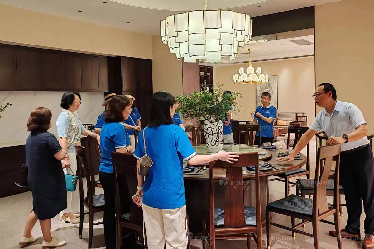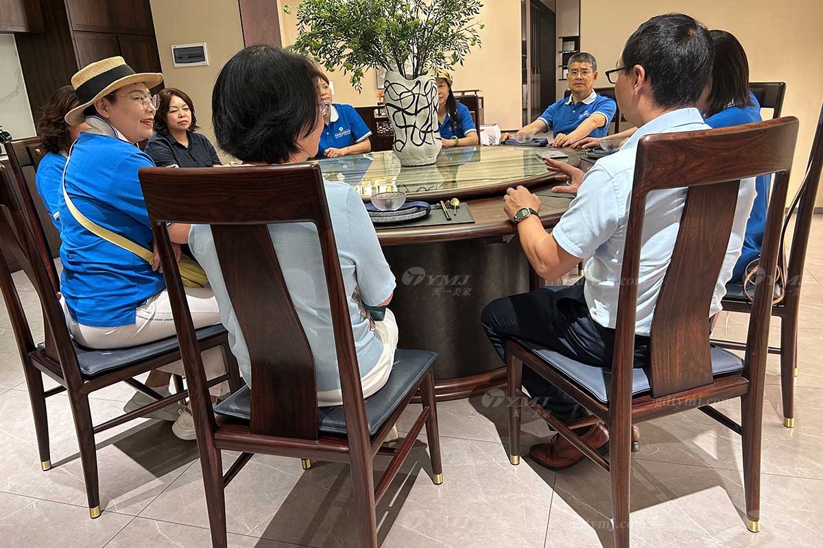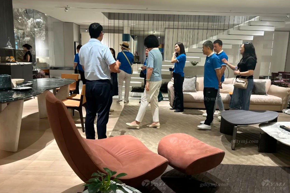 本次活動,由天一美家渠道部總經理趙圍觀先生全程陪同參觀和接待,嘉賓們分別參觀了天一美家總部展廳、中式會所,現代極簡風格旗艦展廳以及新中式家居風格生活館等部分展廳,在天一美家的展示廳內,嘉賓們被眼前的家具產品深深吸引。這些家具不僅精雕細琢、匠心獨具,更是手工藝術與現代制造的完美結合。