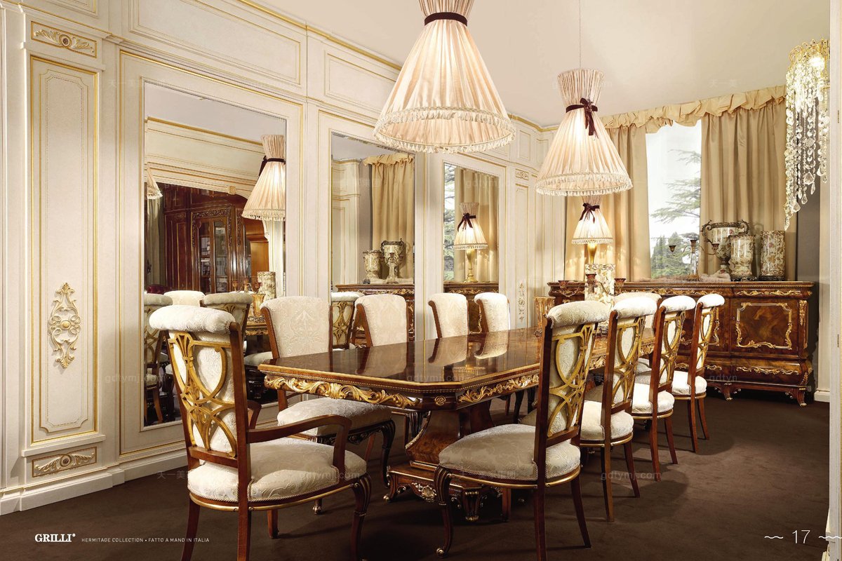 Grilli奢華新古典雕花餐廳系列