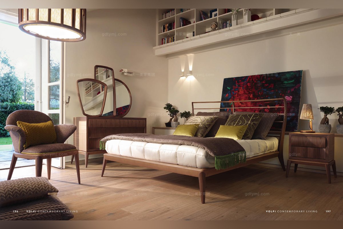 Volpi意大利進(jìn)口法式胡桃色實(shí)木雙人床