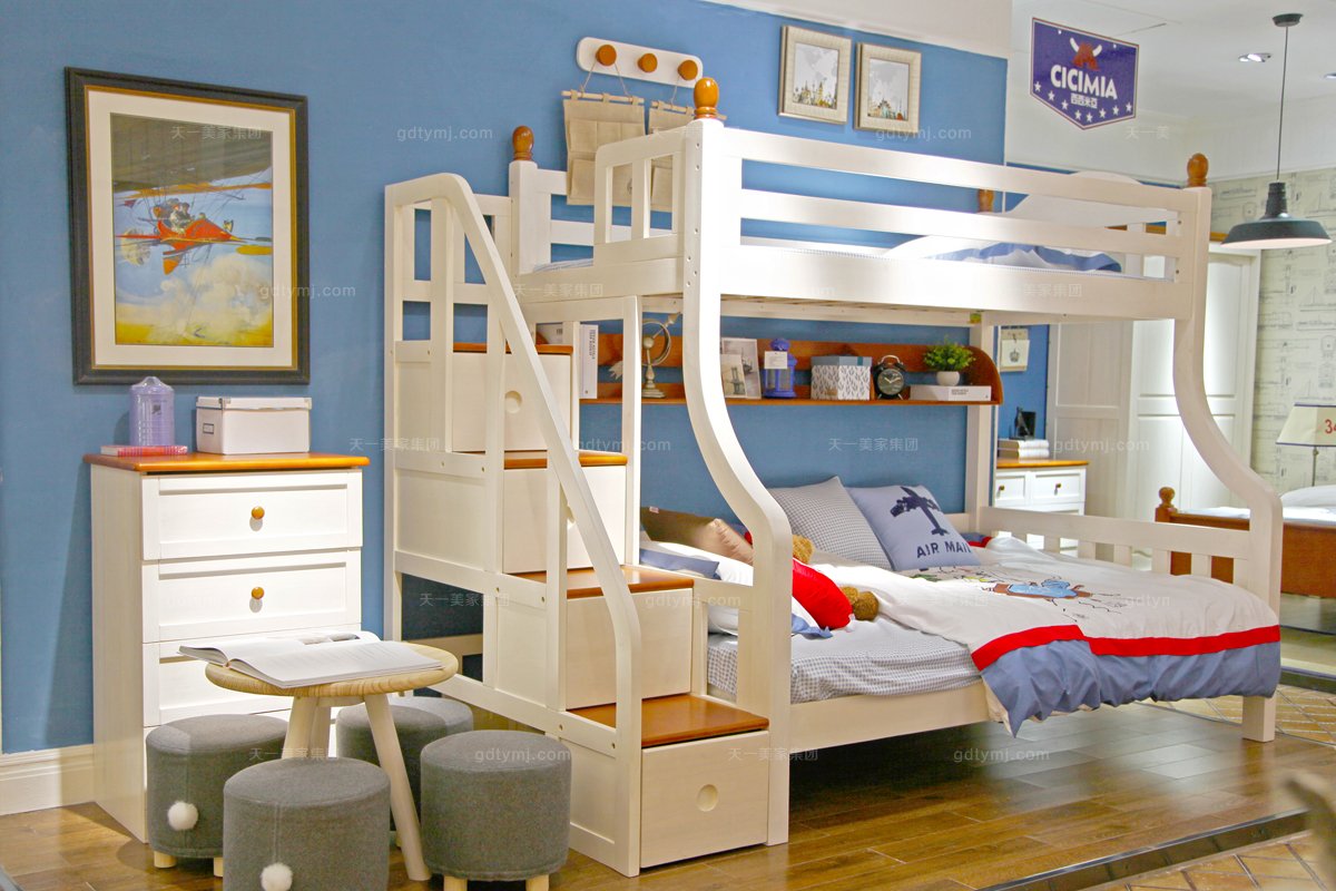 高端兒童品牌家具白色雙層兒童床