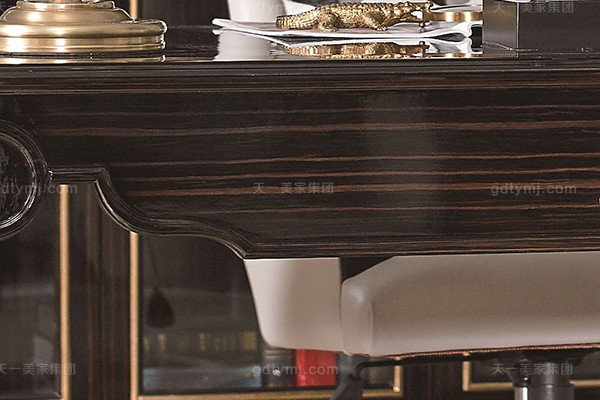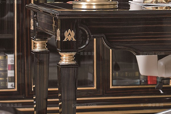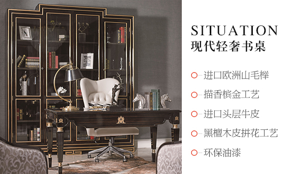 高端現代輕奢華書房家具實木書房書桌黑檀木皮拼花真皮書椅書桌組合