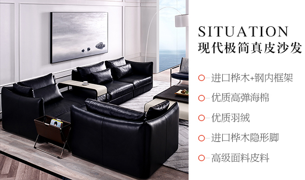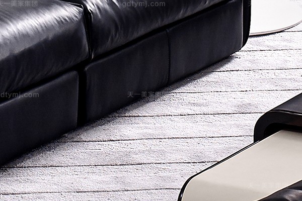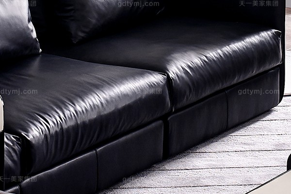 意大利極簡奢現代風家具客廳沙發黑色真皮轉角沙發組合