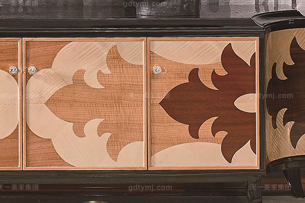 名貴別墅豪宅后現(xiàn)代輕奢風(fēng)格客廳家具楓影木皮拼花電視柜組合
