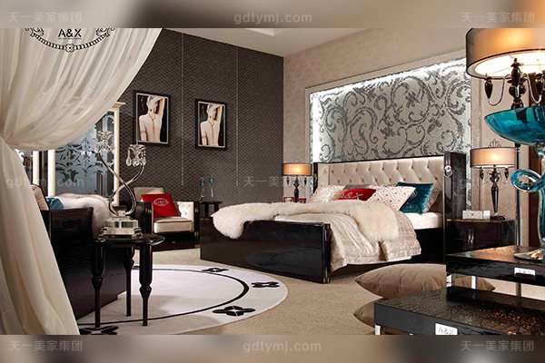 名貴奢華家具后現代輕奢品牌家具黑鱷紋牛角飾面米白色布拉水晶扣雙人床