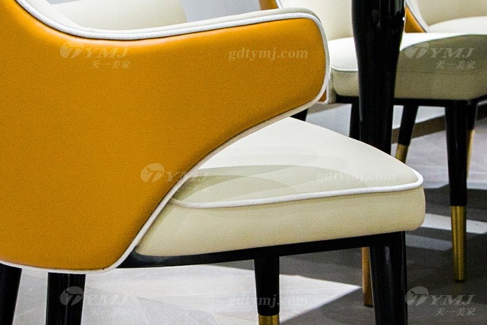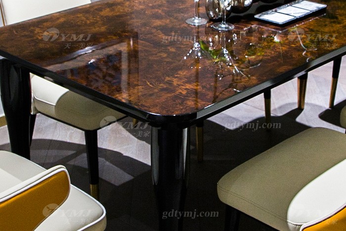 輕奢別墅家具后現(xiàn)代風餐廳愛馬仕橙真皮餐桌椅組合