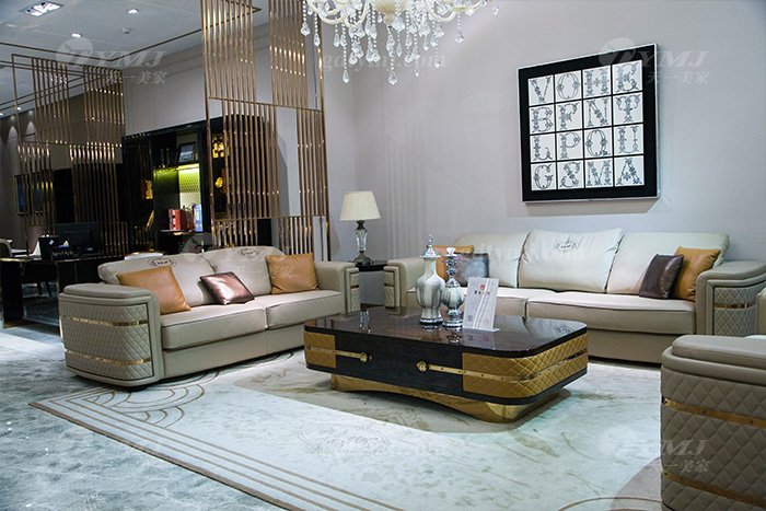 別墅家具品牌后現(xiàn)代輕奢家具客廳米色真鑲玫瑰五金沙發(fā)組合