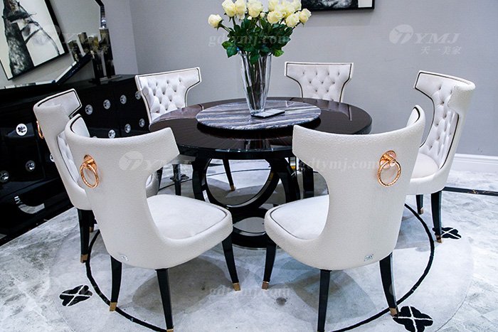 高端奢華品牌家具后現代輕奢餐廳時尚山水紫石面餐桌椅