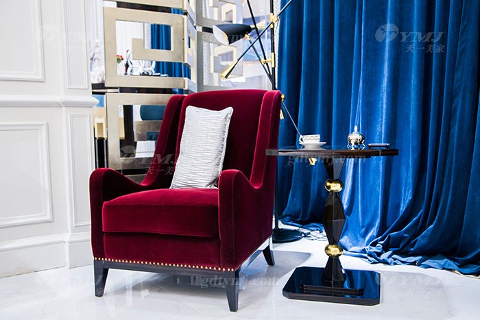 輕奢現(xiàn)代家具別墅豪華家具品牌時(shí)尚酒紅色優(yōu)質(zhì)絨布藝休閑沙發(fā)