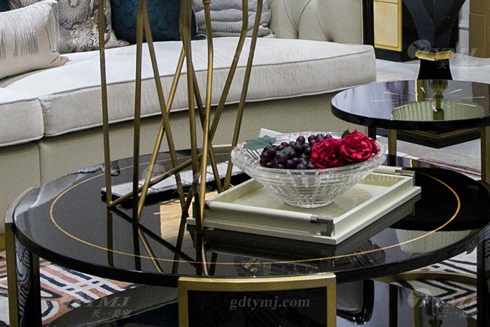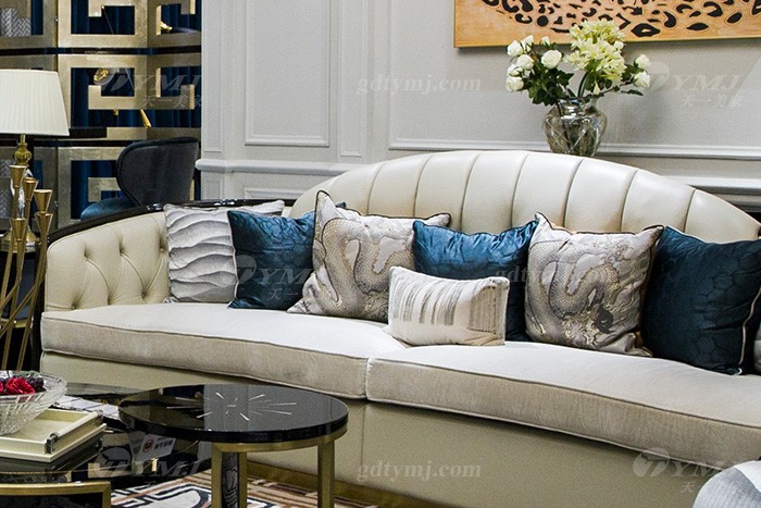 輕奢現代家具品牌高端奢華會所別墅家具客廳實木黑檀真皮沙發組合