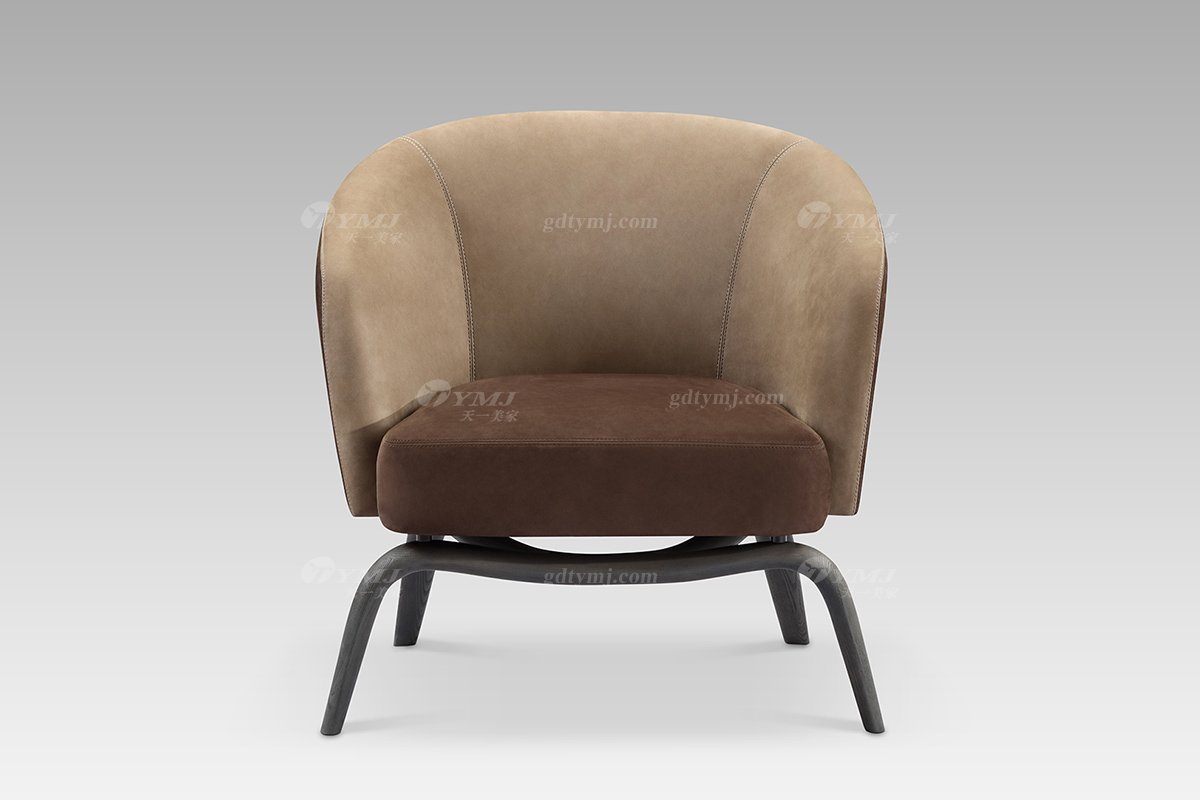 別墅豪華家具現代輕奢咖色反毛皮休閑椅