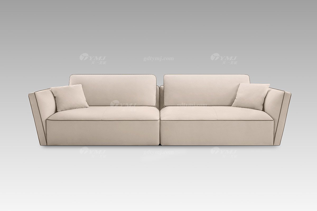 現代輕奢時尚別墅豪宅家具米色真皮三位沙發