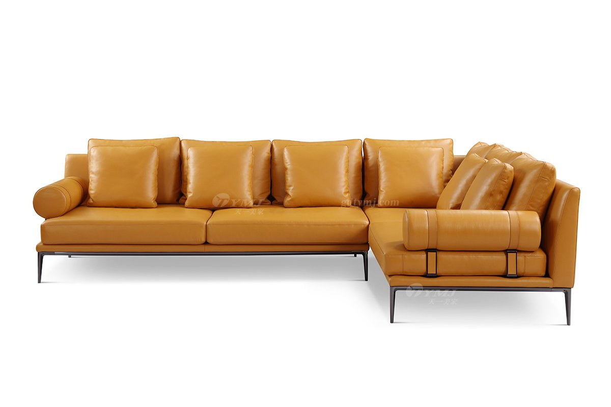 意式極簡風(fēng)格高端別墅家具品牌現(xiàn)代輕奢簡約時(shí)尚客廳橙色真皮轉(zhuǎn)角沙發(fā)
