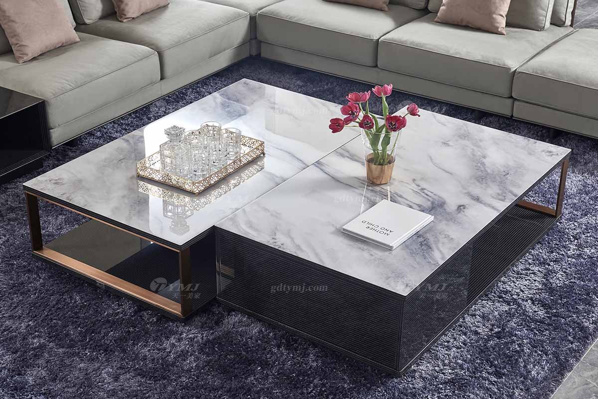 高端會所別墅大宅家具品牌后現代輕奢風格客廳大理石面+黑檀茶幾