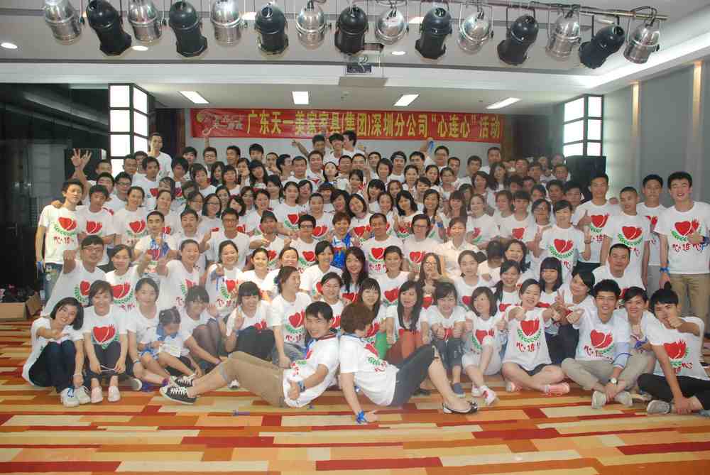 2012年7月3日,對深圳分公司的全體員工來說,是一個快樂的日子,也是大家的“心連心”活動日。當天下午,全體員工統一換上了印有“心連心”和天一美家LOGO的醒目衣服,浩浩蕩蕩,開往用餐場地,非常的熱鬧,大家臉上個個都洋溢著燦爛的笑容。