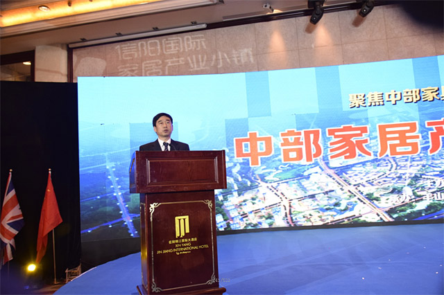 下午2時,信陽市家具協會正式成立。信陽市長喬新江就"中部家居產業論壇"發表了熱情洋溢的致辭,喬市長歷數了信陽的區位、自然、人文各要素,回顧了小鎮建設發展情況,勉勵各位嘉賓既要是建言獻策的智囊團、開展民間交流的生力軍,又要是信陽內引外聯的橋梁和紐帶、助推信陽發展的好幫手,雙方共譜開放合作的嶄新篇章。
