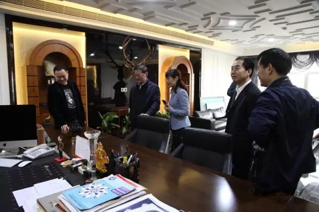 程一董事長帶領統(tǒng)戰(zhàn)部部長方波、副市長張明春、招商局局長王亞玲一行參觀了總部大廈的展廳及辦公區(qū)域,并細心的介紹了總部展廳的產品及集團總部的組織結構。