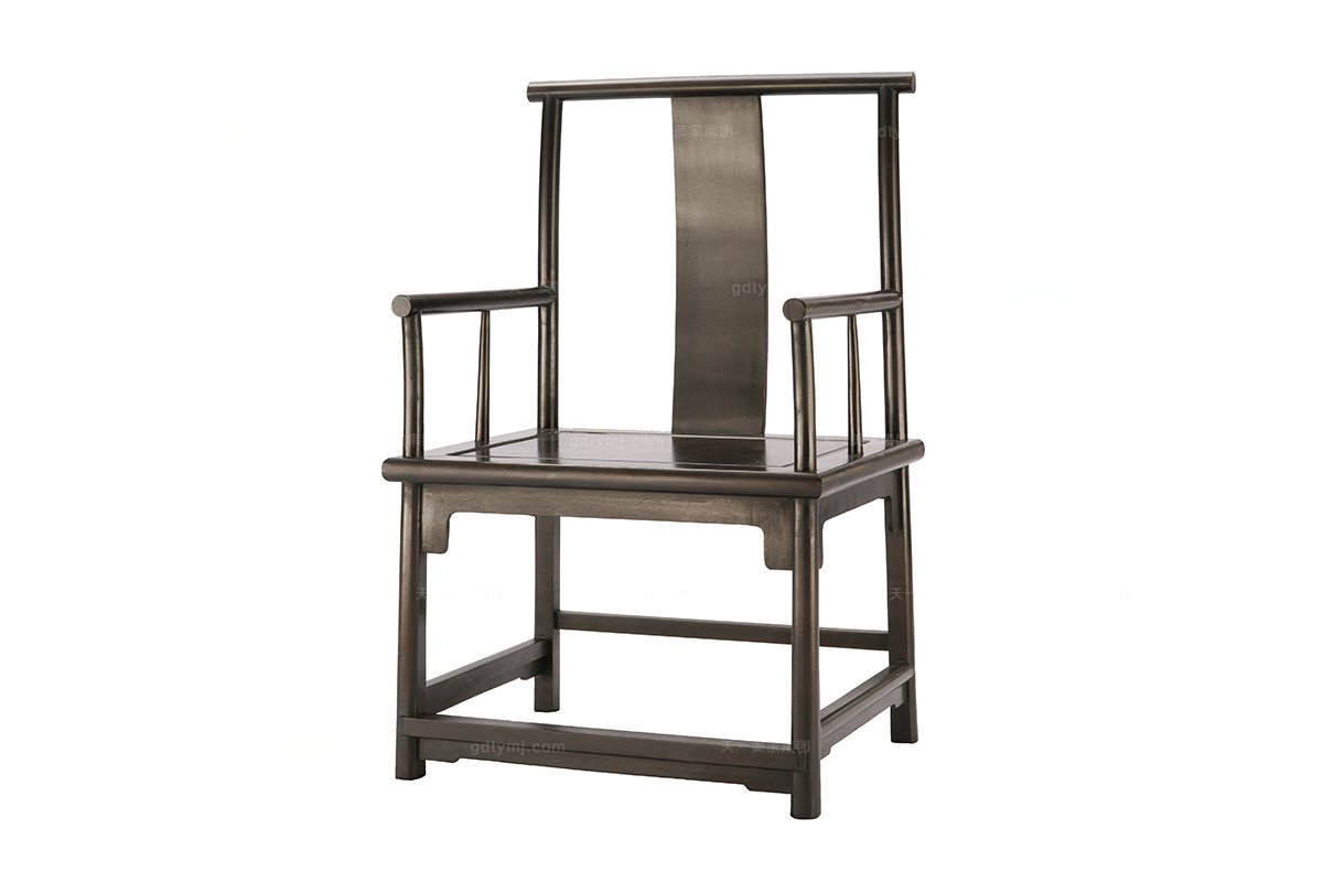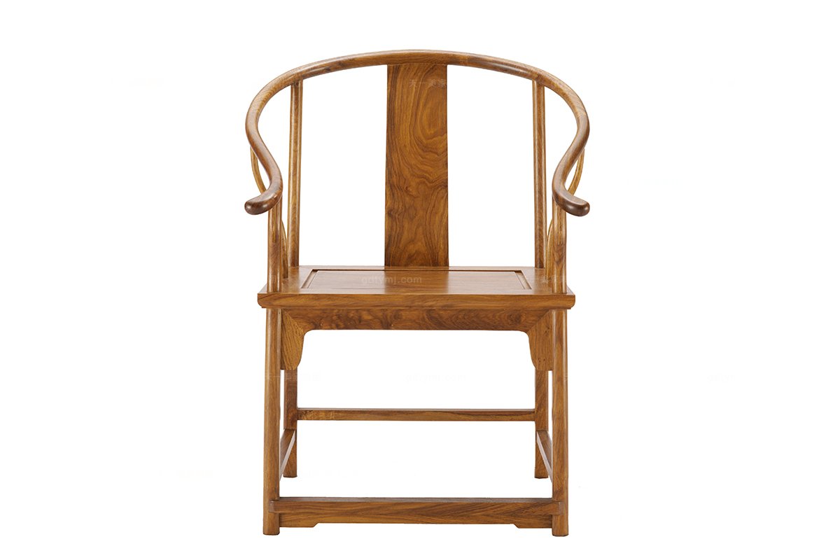 官帽椅,因以其造型酷似古代官員的官帽而得其名,分為四出頭式官帽椅和南官帽椅兩種。官帽椅造型簡潔,就椅子本身而言,點、線、肌理、色彩構成了其造型審美的基本元素。
