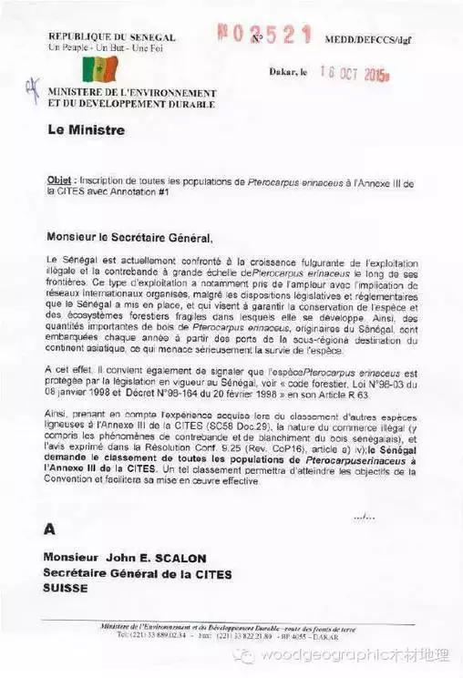 塞內(nèi)加爾關(guān)于刺猬紫檀保護的提案文件(圖片來源于網(wǎng)絡(luò))