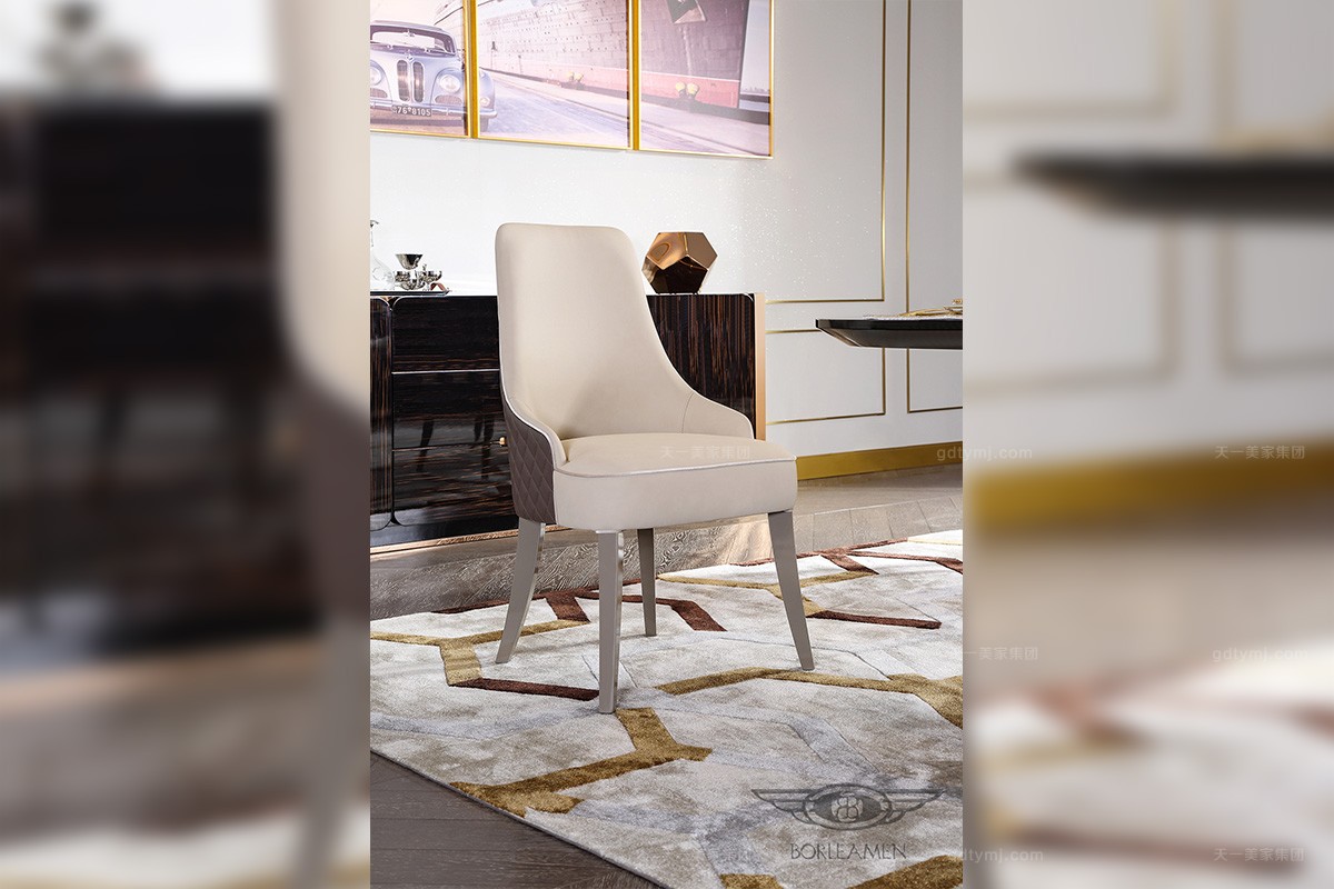 3、輕奢后現代家具的造型一般以矩形為基本框架,板件的邊角又巧妙的運用了橢圓型處理,使用大量精巧優雅的弧線設計,富有韻律之美,溫文爾雅、卓越超群。頗具前瞻性、不拘一格的設計理念,迎合新貴一族的審美品位。