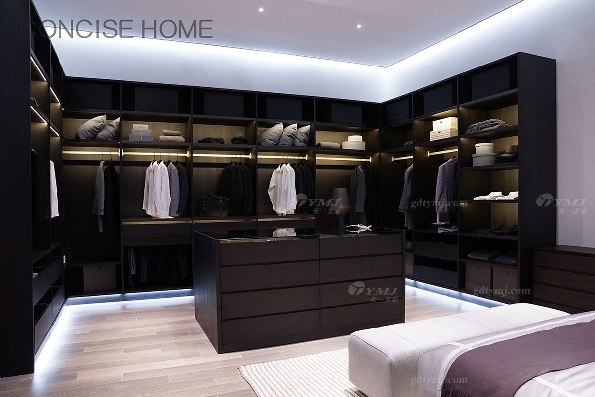 現代意式極簡的臥室給人一種時尚的舒適感,整體時尚而不缺奢華,采用皮布藝材質結合,不同尺寸的柜子更方便存放衣物。